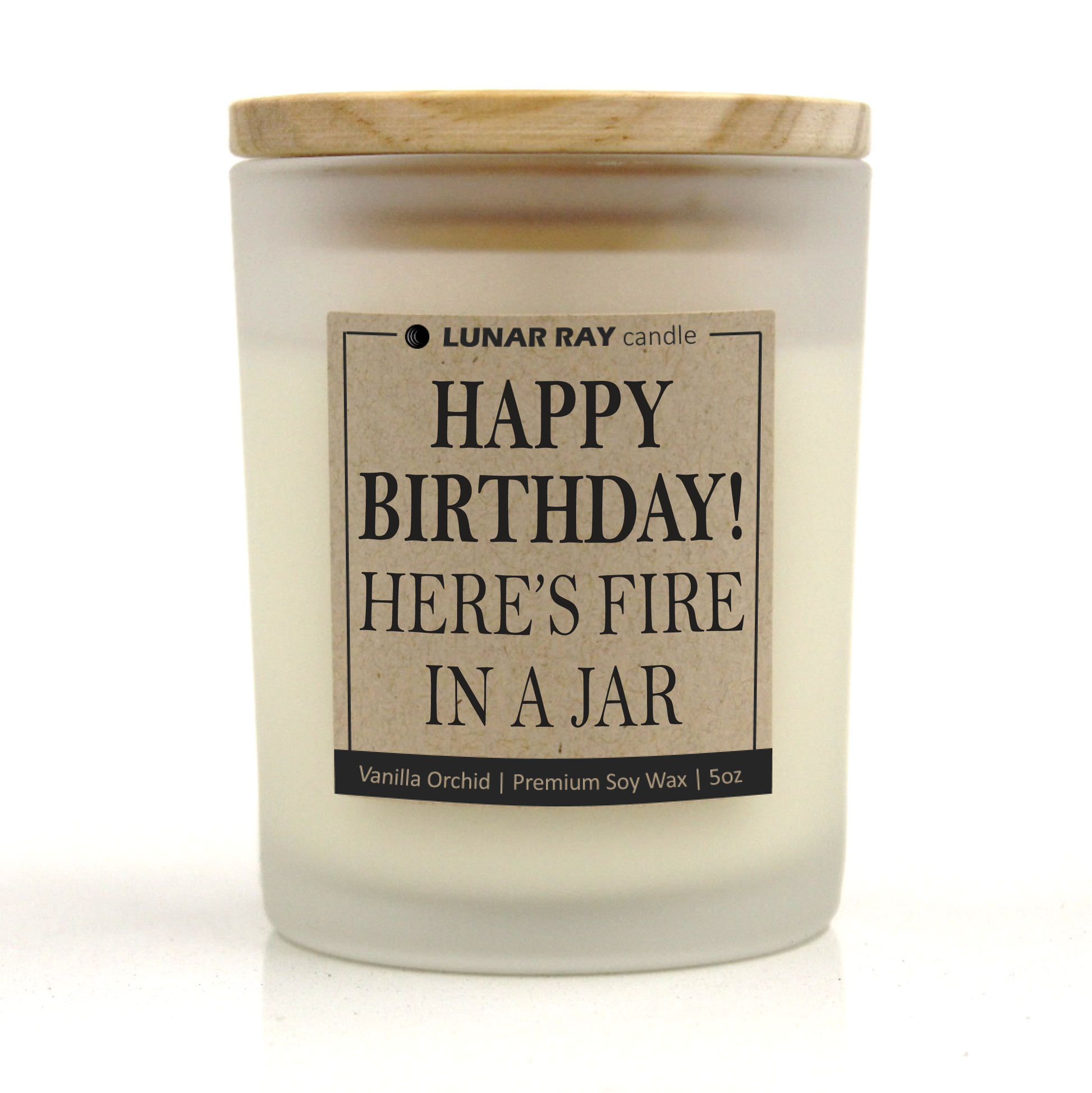 HAPPY BIRTHDAY! HERE'S FIRE IN A JAR - Kraft Label, Vanilla Orchid Scent, Frosted Jar, Candle